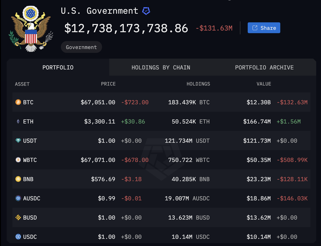 Chính phủ Hoa Kỳ nắm giữ 12 tỷ đô la Bitcoin — Arkham Intelligence