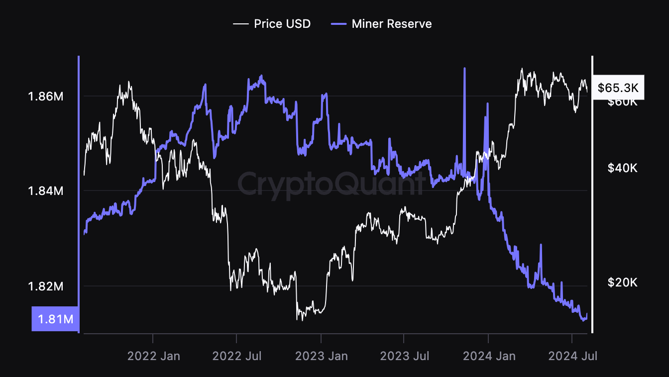 Khối lượng bán BTC thấp của CleanSpark phản ánh xu hướng chung trong ngành khai thác. Dự trữ của miners, số lượng BTC mà các miners đang nắm giữ, đã giảm ổn định kể từ năm 2021 và hiện đang ở mức thấp nhiều năm, cho thấy áp lực bán từ phía cung đã được giảm thiểu hiện tại.