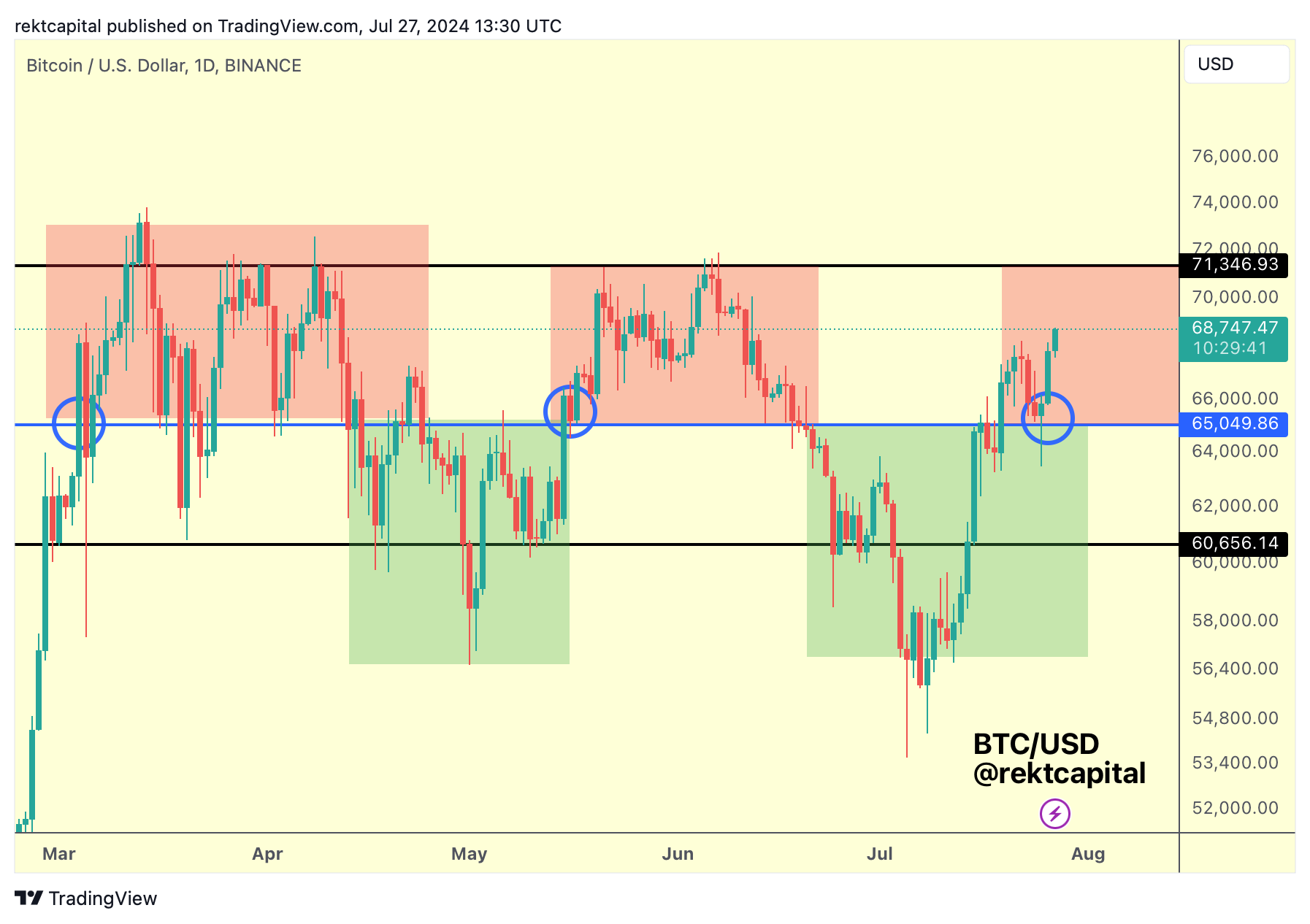 BTC/USD, biểu đồ 1 ngày. Nguồn: Rekt Capital