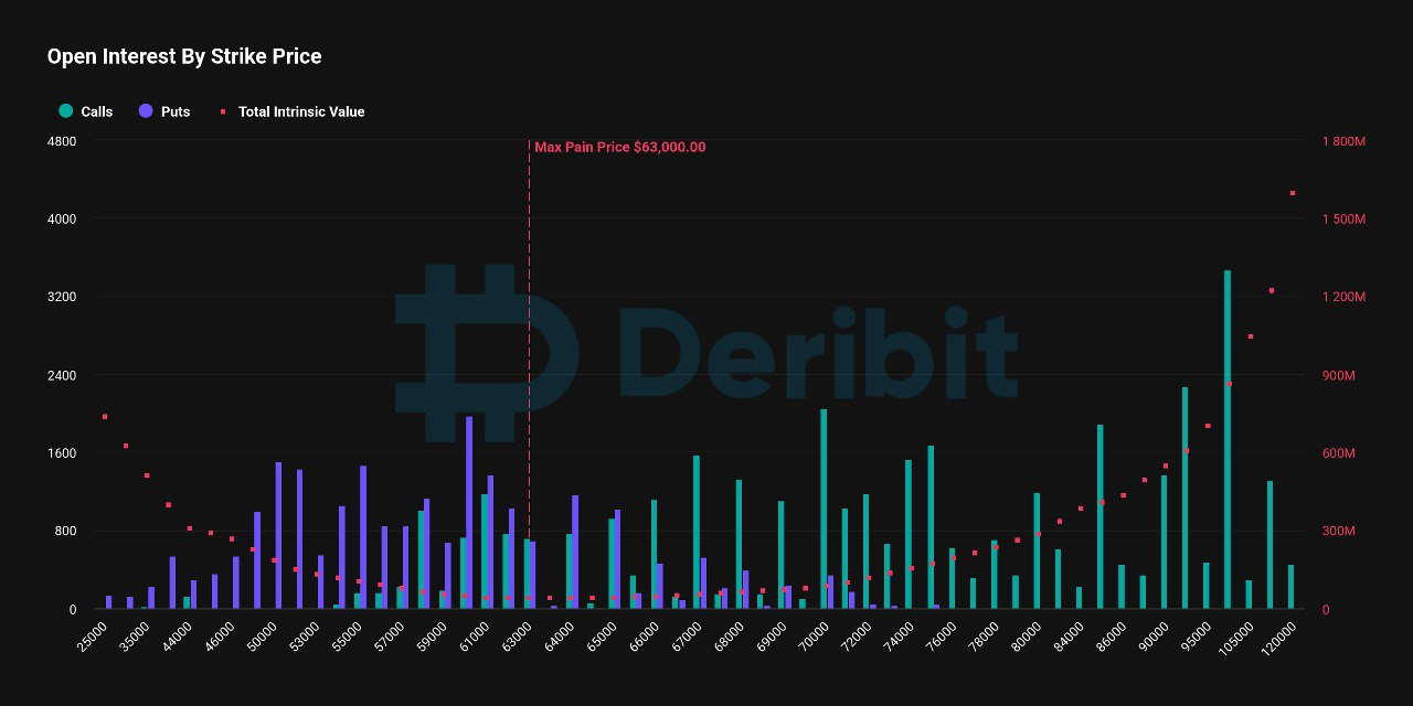 Điều này đặt "điểm đau tối đa" của Bitcoin ở mức $63,000, điều này có thể tạo ra áp lực giảm giá thêm cho đồng tiền mã hóa đầu tiên trên thế giới.