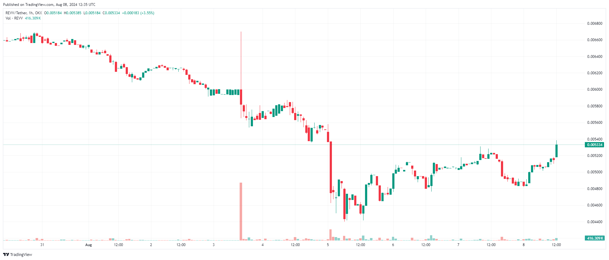 Token Revv đã giảm hơn 24% trên biểu đồ tháng và hiện đang giảm hơn 15% trên biểu đồ tuần, theo dữ liệu từ CoinMarketCap.