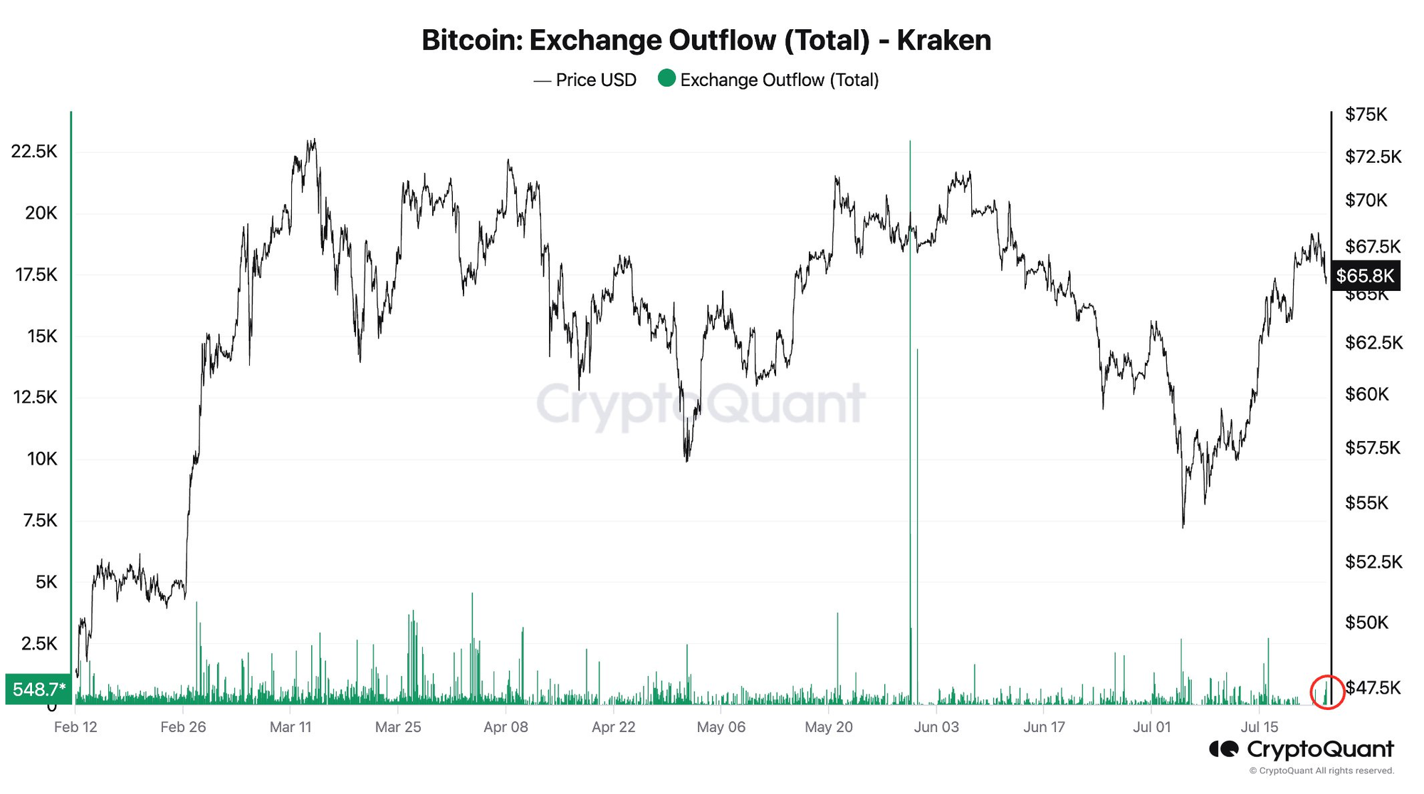 Bitcoin: dòng chảy ra khỏi sàn (tổng), Kraken. Nguồn: Ki Young Ju