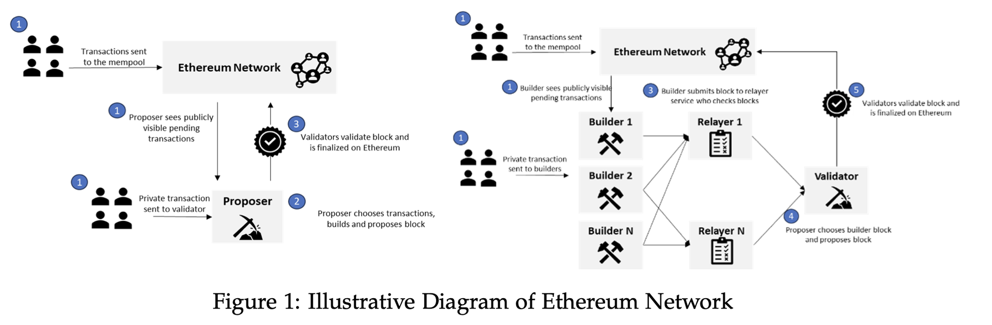 Cơ chế đồng thuận trên blockchain Ethereum đã chuyển từ proof-of-work (bằng chứng công việc) sang proof-of-stake (bằng chứng cổ phần) ngay sau khi các lệnh trừng phạt đối với Tornado Cash được áp dụng. Trên Ethereum, các nhà đề xuất (còn gọi là validators ở nơi khác) nhận các khối giao dịch từ các nhà xây dựng.