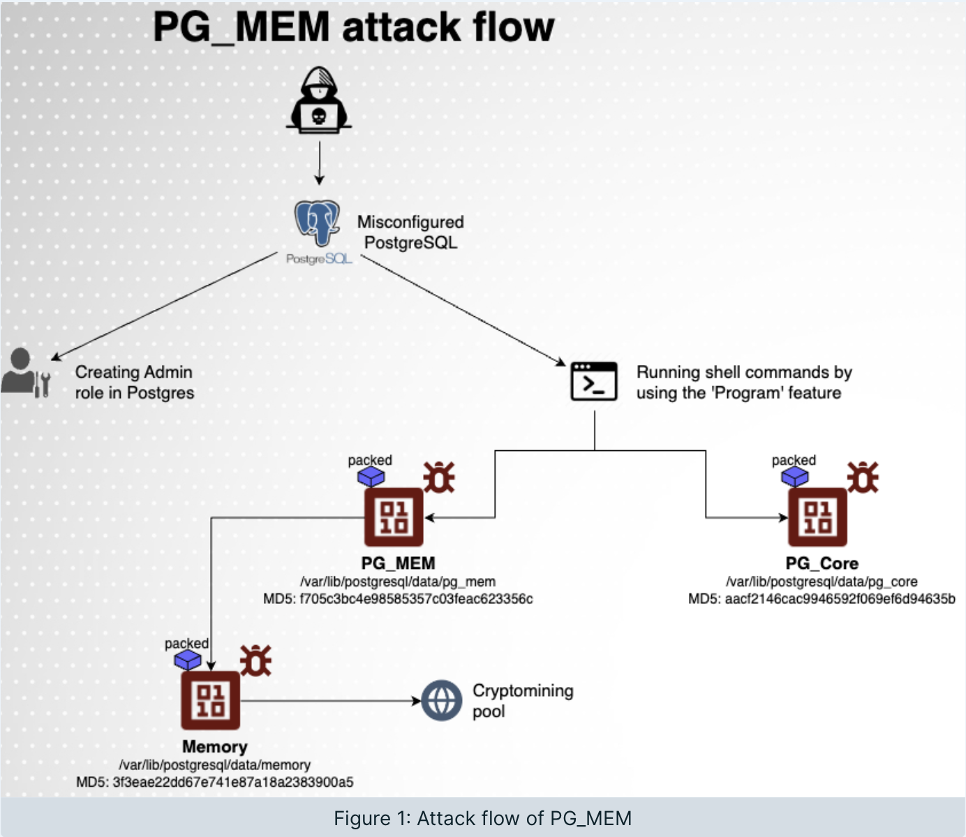 Theo công ty an ninh mạng cloud-native Aqua, PG_MEM được cài đặt sau khi một cuộc tấn công brute-force tìm thấy mật khẩu yếu trên cơ sở dữ liệu PostgreSQL. PostgreSQL là một hệ quản trị cơ sở dữ liệu quan hệ đối tượng phổ biến, thường được sử dụng bởi các cơ sở dữ liệu có kết nối Internet. Hiện có hơn 800.000 cơ sở dữ liệu như vậy, với gần 300.000 cơ sở dữ liệu nằm ở Hoa Kỳ và hơn 100.000 ở Ba Lan.