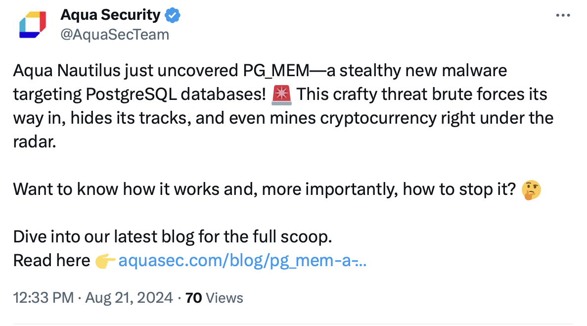 “Chiến dịch này đang khai thác các cơ sở dữ liệu PostgreSQL có kết nối Internet với mật khẩu yếu. Nhiều tổ chức kết nối cơ sở dữ liệu của họ với Internet, mật khẩu yếu là kết quả của việc cấu hình sai và thiếu kiểm soát danh tính phù hợp. Đây không phải là vấn đề hiếm gặp và nhiều tổ chức lớn gặp phải những vấn đề này.”