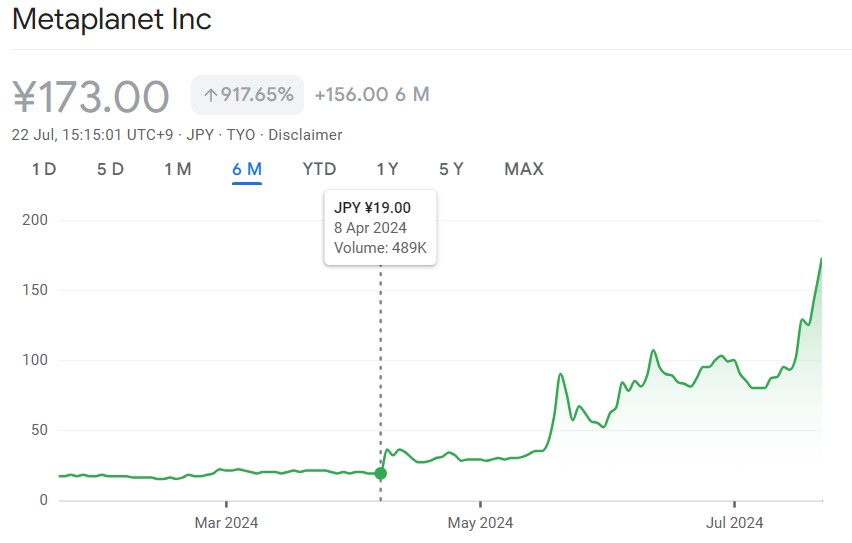 Cổ phiếu của Metaplanet đã tăng 810% kể từ lần mua BTC đầu tiên