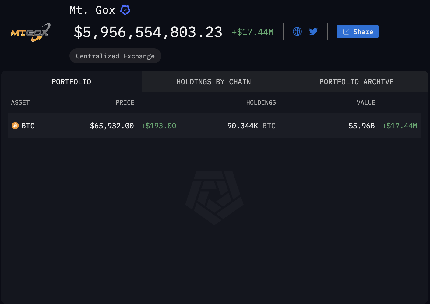 Số Bitcoin còn lại của Mt. Gox. Nguồn: Arkham Intelligence