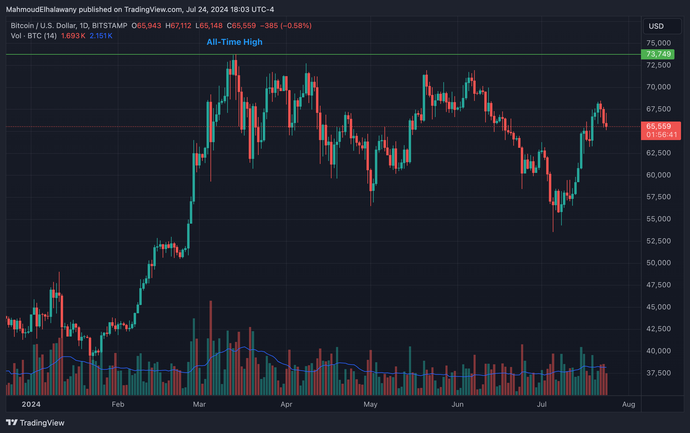 Sau nhiều diễn biến chính trị, Bitcoin đã đạt mức cao gần đây khoảng 68.000 USD và hiện đang giao dịch quanh mức 65.000 USD mặc dù có đợt hoàn trả từ Mt. Gox đang diễn ra.