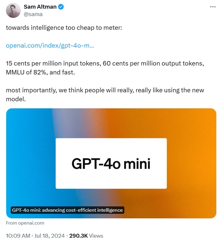 OpenAI ra mắt ChatGPT vào tháng 11 năm 2022. Trợ lý AI này nhanh chóng thu hút sự quan tâm, vượt qua mốc 100 triệu người dùng hàng tuần. Công ty trí tuệ nhân tạo, có trụ sở tại Hoa Kỳ, đã công bố ra mắt một mô hình AI mới, có tên là “GPT-4o Mini,” vào ngày 18 tháng 7.