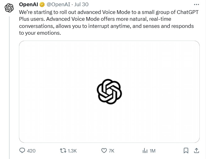 OpenAI Cuối Cùng Ra Mắt ‘Chế Độ Giọng Nói Nâng Cao’ Cho Một Số Người Dùng ChatGPT