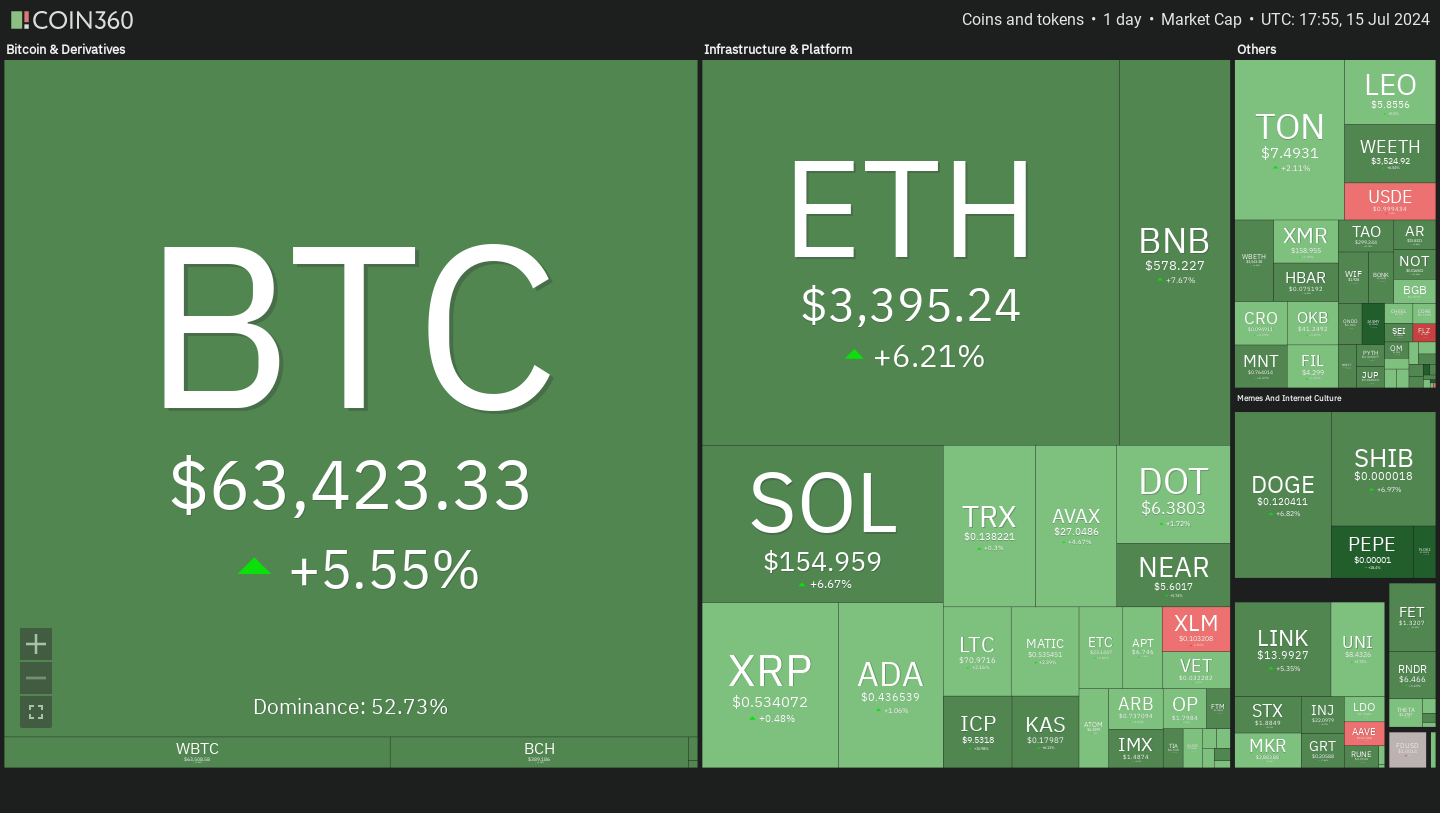 Phân Tích Giá 15/07: SPX, DXY, BTC, ETH, BNB, SOL, XRP, TON, DOGE, ADA