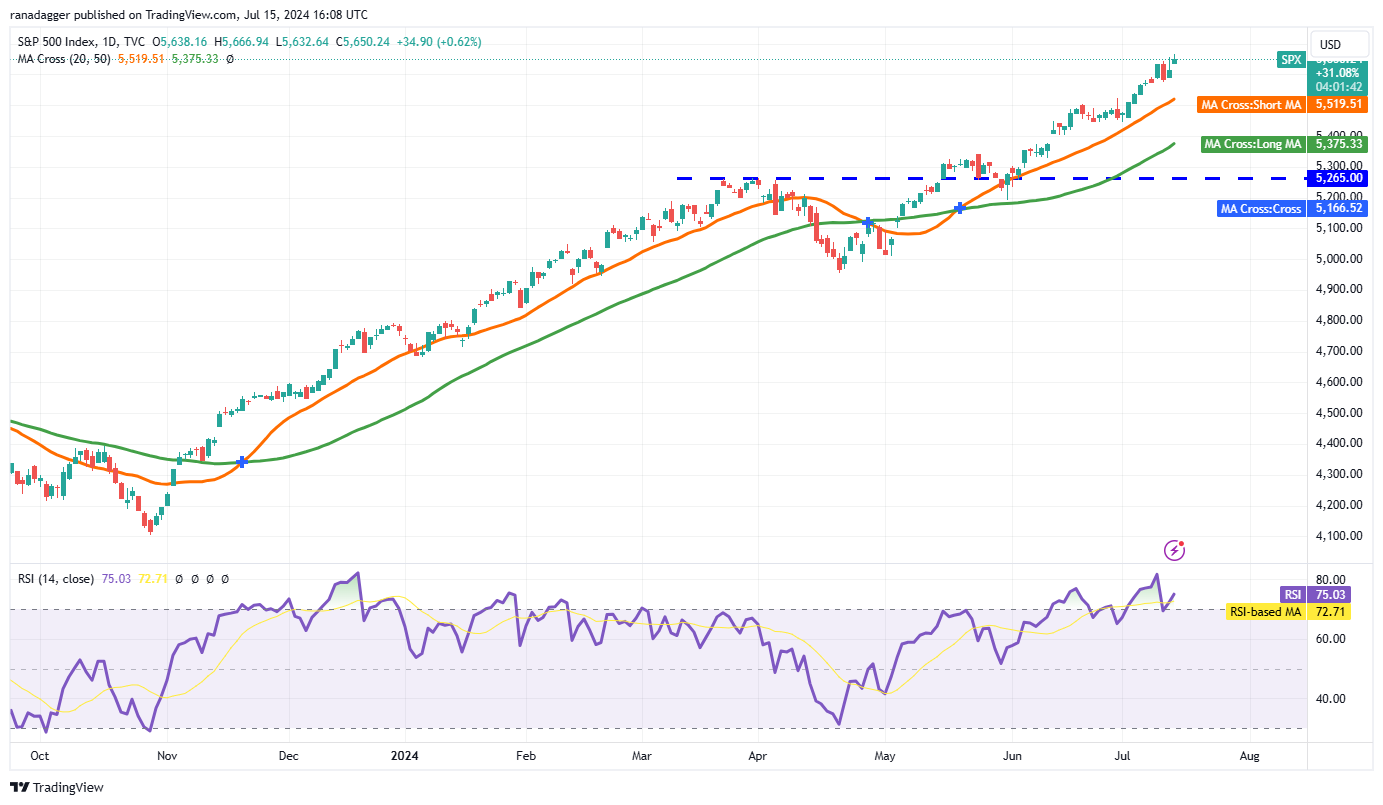 Chỉ số S&P 500 vẫn duy trì xu hướng tăng vững chắc. Các nhà đầu cơ đã mở rộng đợt tăng vào ngày 15 tháng 7, đạt mức cao nhất mọi thời đại 5.666.