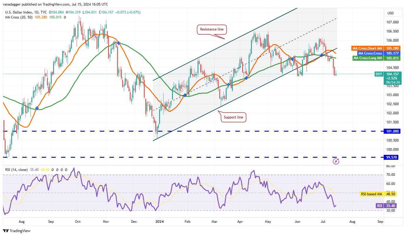 Các nhà đầu cơ đã cố gắng đẩy chỉ số USD (DXY) vượt qua đường SMA 50 ngày (105) vào ngày 9 tháng 7, nhưng các nhà bán khống đã giữ vững lập trường của họ.