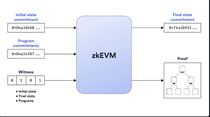 Zero-Knowledge Ethereum Virtual Machine (zkEVM) allows a blockchain to process transactions efficiently without revealing transaction details.