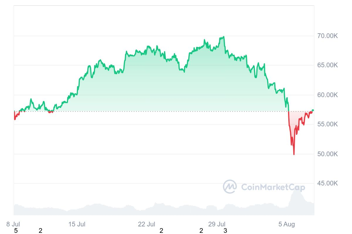 Biểu đồ giá Bitcoin một tháng. Nguồn: CoinMarketCap