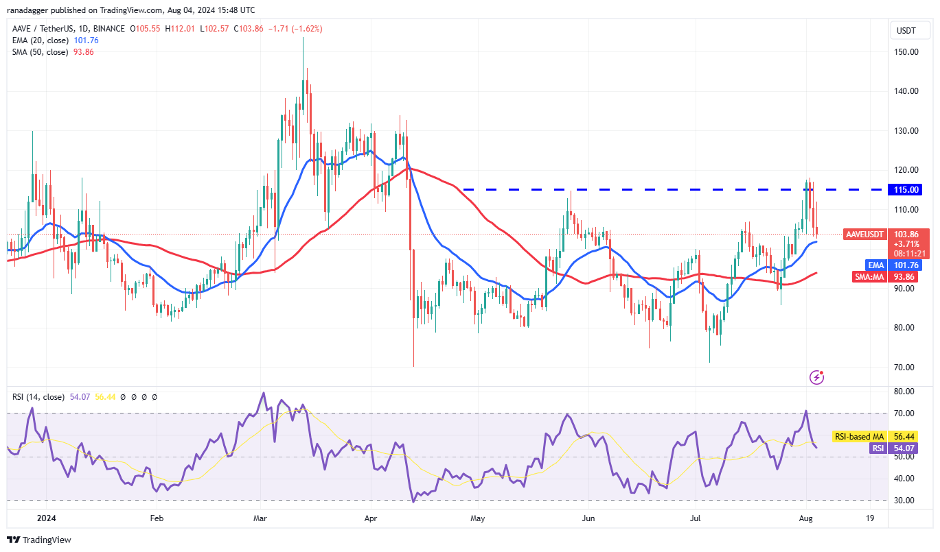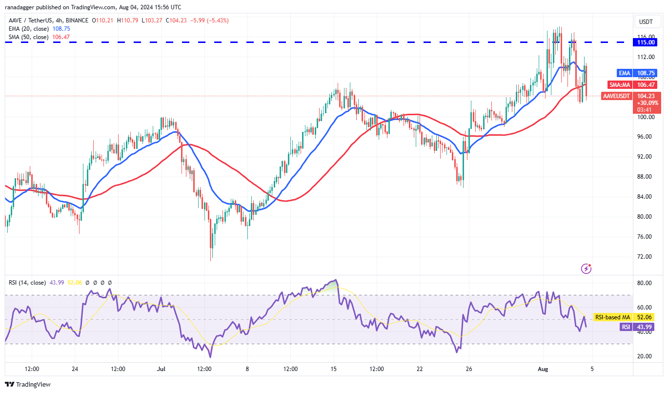 Các nhà đầu tư đã đẩy giá Aave (AAVE) lên trên mức kháng cự $115 vào ngày 1 tháng 8 nhưng không thể duy trì mức cao hơn.