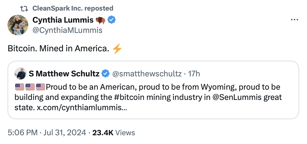CleanSpark mới chỉ bắt đầu hoạt động tại Wyoming. Phần lớn hoạt động của công ty hiện tập trung tại Georgia và Mississippi. Giám đốc điều hành của CleanSpark, Zach Bradford, cho biết trong một thông báo: