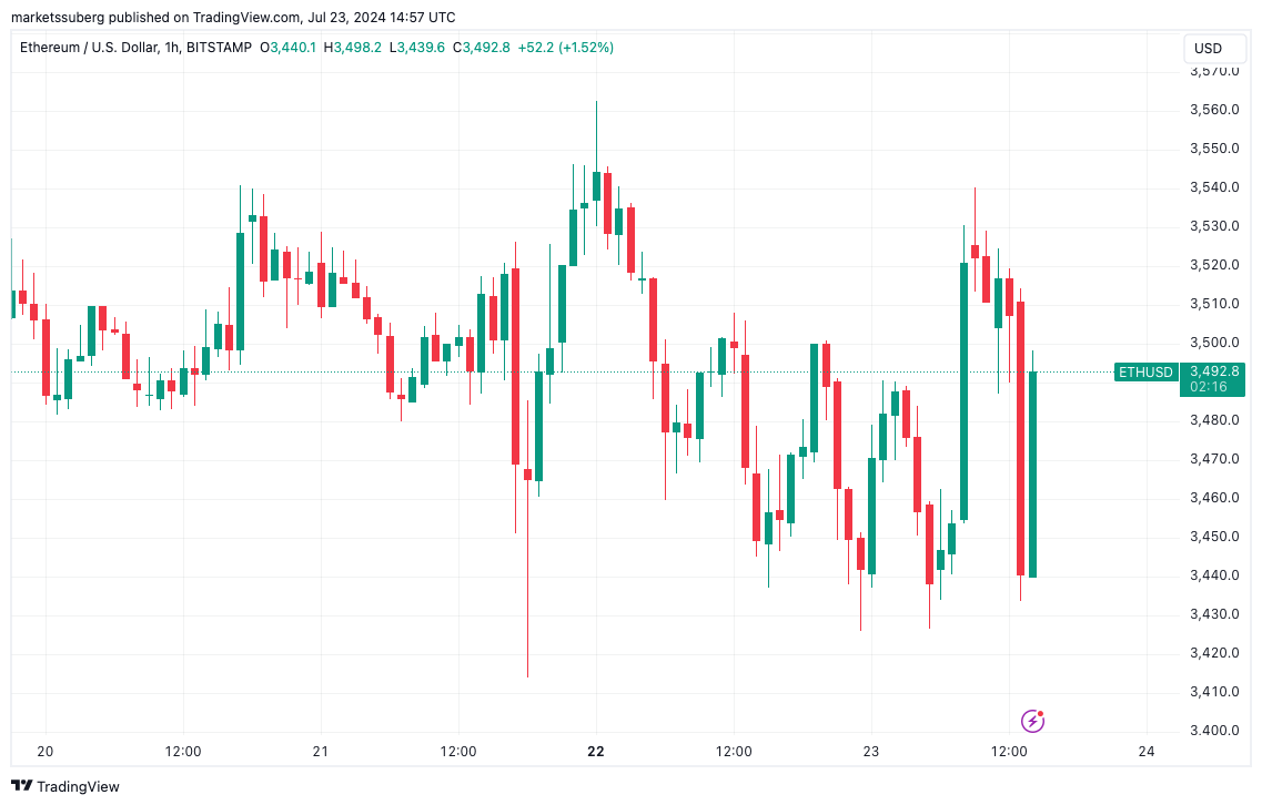 Sự biến động của Bitcoin và Ether tiếp tục khi các nhà giao dịch crypto phản ứng tích cực với khối lượng giao dịch của Ether ETF.