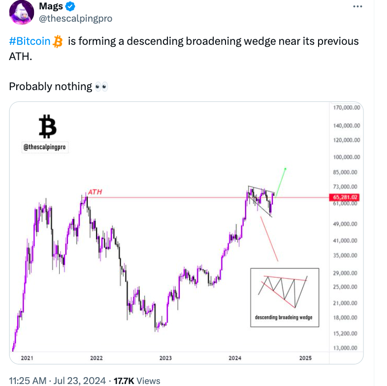Biểu đồ BTC/USD. Nguồn: Jelle/X