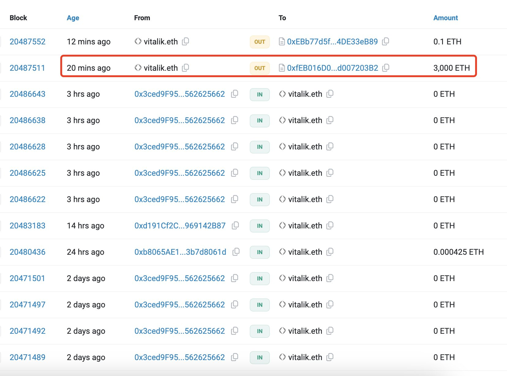 “vitalik.eth đã chuyển 3.000 $ETH (8,05 triệu đô la) đến một ví đa chữ ký cách đây 20 phút, có thể là một khoản quyên góp.”