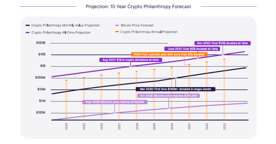 Theo nền tảng từ thiện tiền điện tử The Giving Block, quyên góp tiền điện tử dự kiến sẽ vượt 10 tỷ đô la trong một thập kỷ.