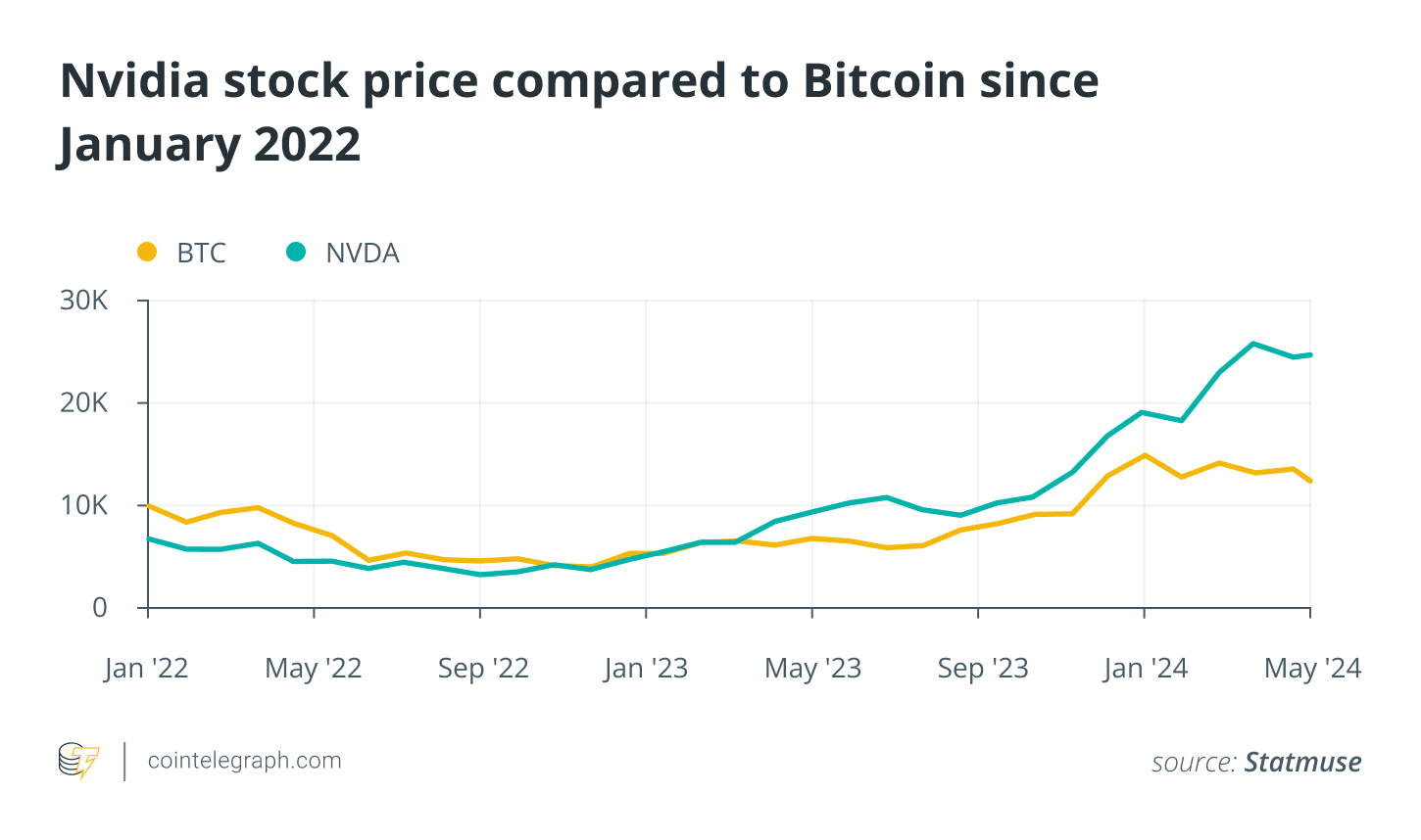 Nhà sản xuất đơn vị xử lý đồ họa Nvidia đã nổi lên như một đối thủ quan trọng trong lĩnh vực AI, với cổ phiếu của nó trải qua sự tăng trưởng gấp bội mà ngay cả Bitcoin cũng không thể theo kịp.