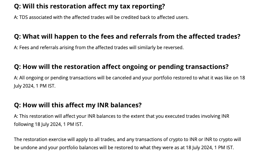 “Các khoản phí và giới thiệu phát sinh từ việc phục hồi này cũng sẽ được hoàn tác,” WazirX cho biết.