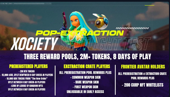 XOCIETY’s Pop Extraction Spotlight Test offers players a significant opportunity to participate in an expansive playtest event. With over 2 million NTx tokens and exclusive rewards up for grabs, participants can engage in competitive gameplay sessions from July 15th to 22nd.